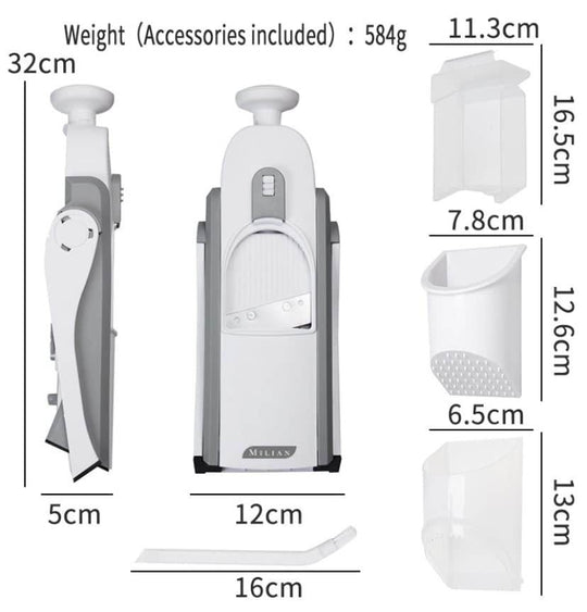Make cooking faster and safer with this Multi-Function Vegetable Slicer. Designed with a hidden sharp blade system and 100+ adjustable presets, it delivers perfect, uniform cuts every time — without changing blades.